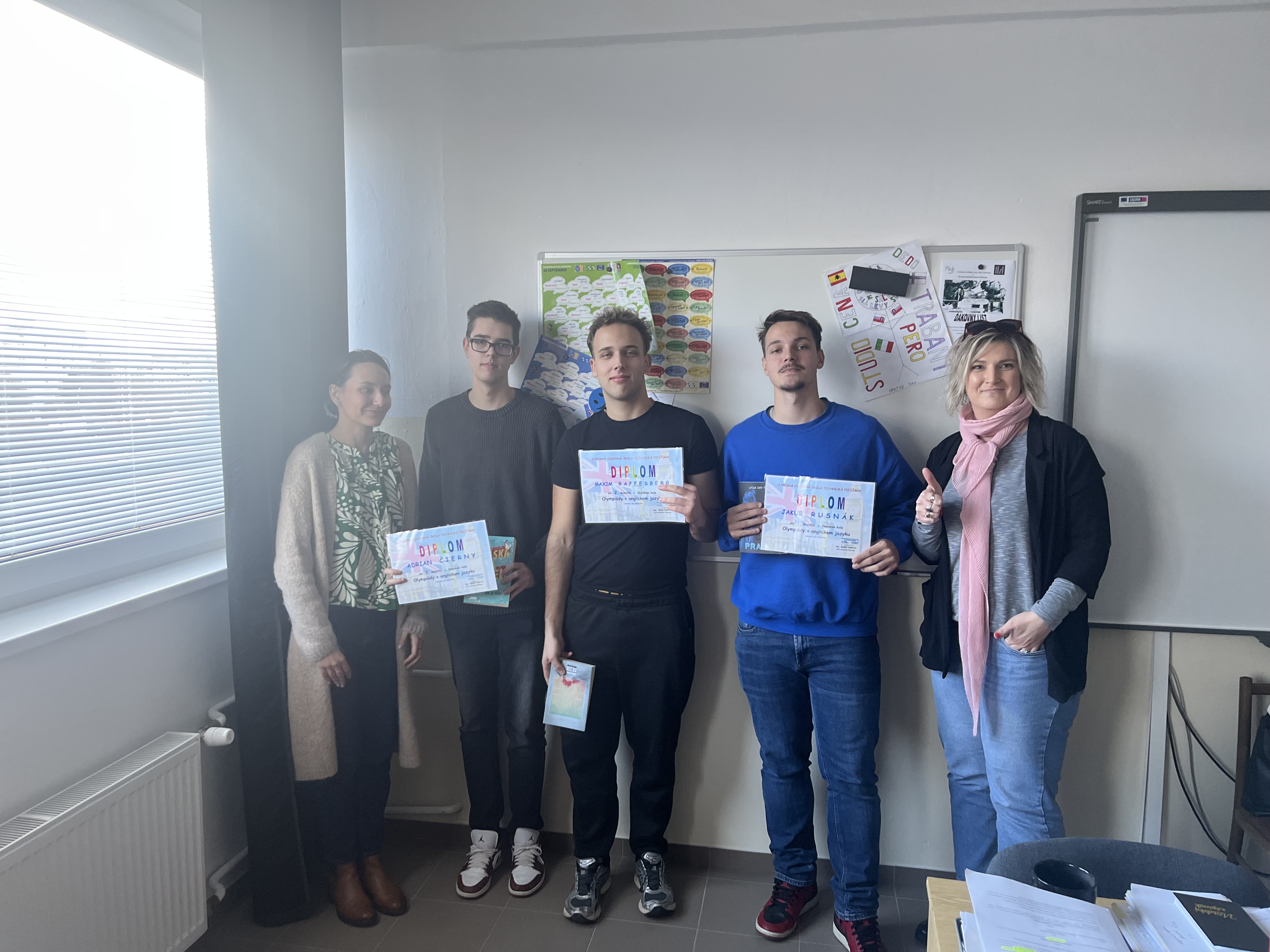 Víťazovi, Jakubovi Rusnákovi, ktorý postupuje na okresné kolo Olympiádyv anglickom jazyku v januári 2026 blahoželáme a dúfame, že nadviaže naúspechy našich študentov v okresných i krajských kolách OAJ. Všetkým súťažiacim ďakujeme za účasť a želáme im veľa úspechov amotivácie pri štúdiu tohto dôležitého jazyka.